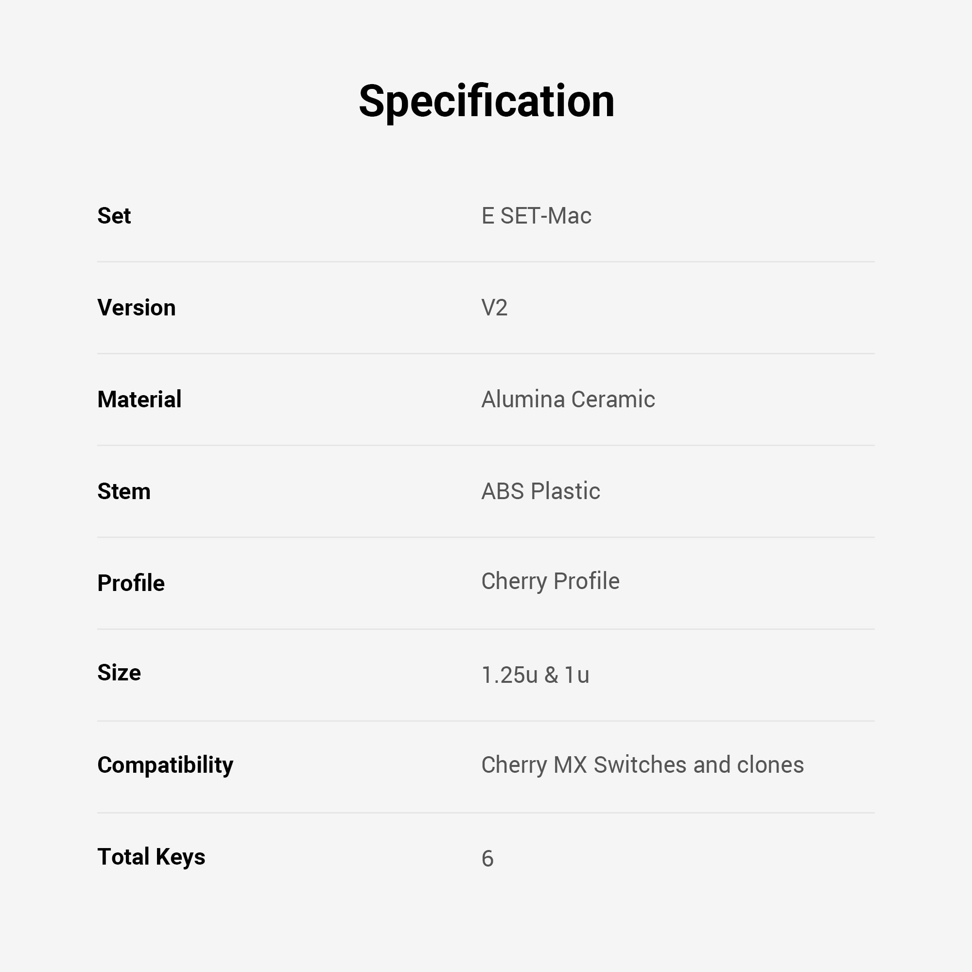 L'Ensemble Mac propose six touches OPTION et COMMAND en 1,25u et 1u pour des modificateurs Mac en céramique freestyle.