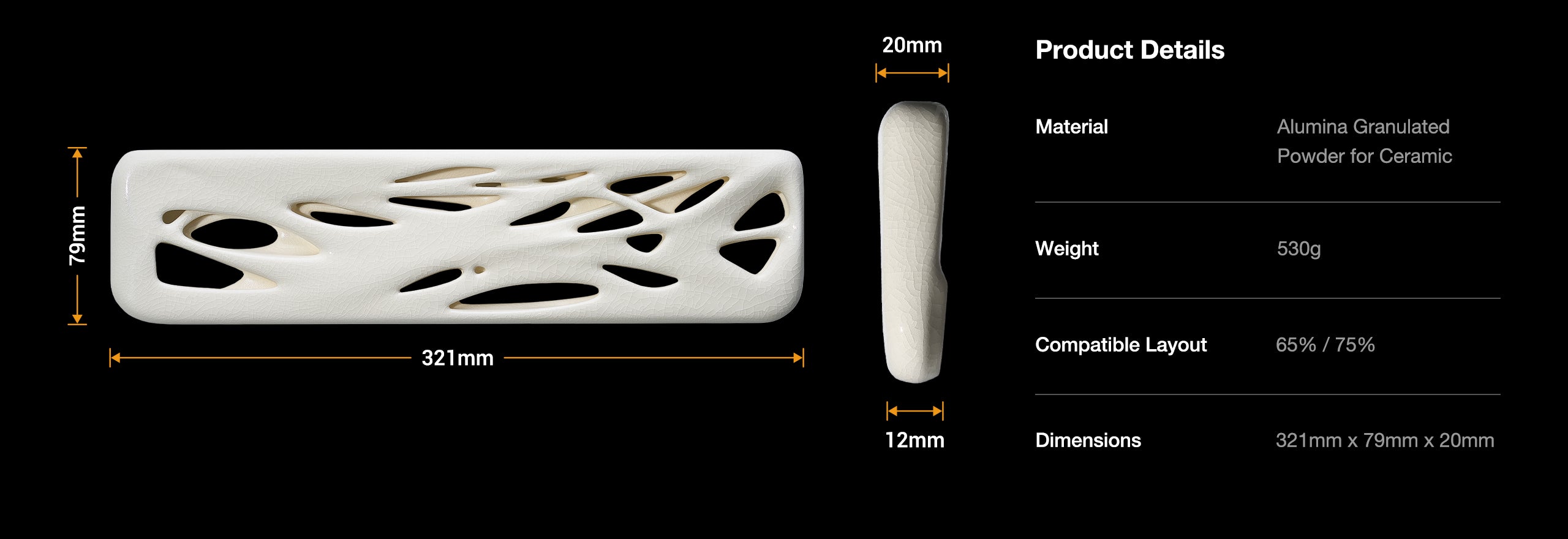 Crafted with 3D Ceramic Printing, this wrist rest undergoes meticulous processes: multi-stage cleaning, vacuum impregnation for strength, biscuit firing for stability, expert glazing, and high-temperature finishing. Seamlessly blending durability, ergonomic comfort, and sleek aesthetics for unmatched precision.