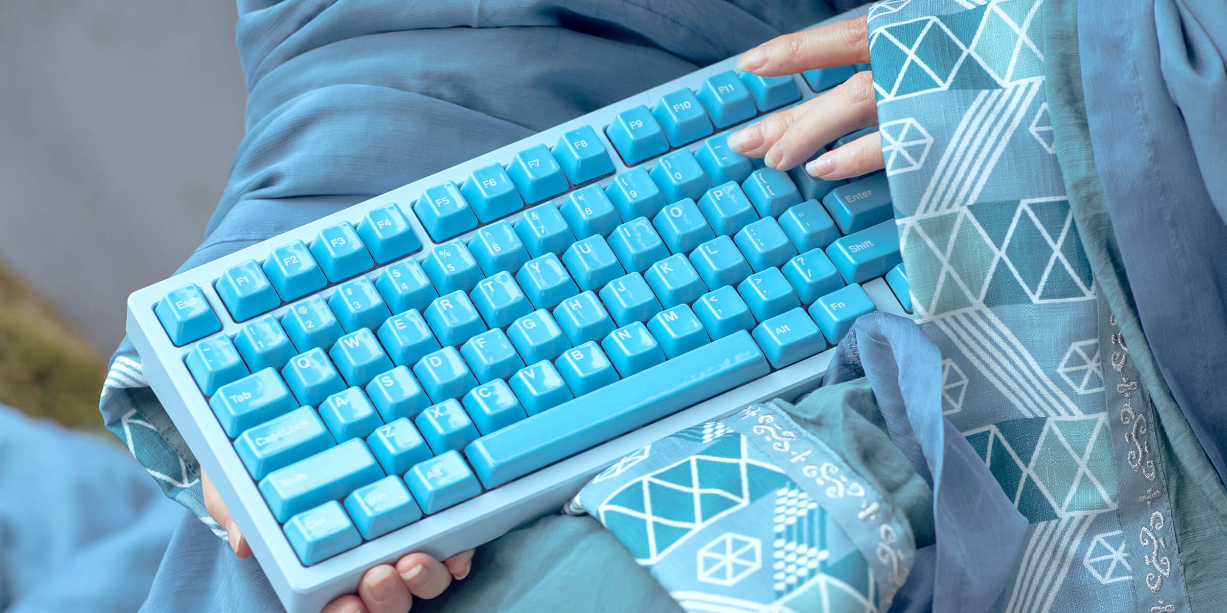 A full 114 keys ceramic keycap set with color & legend options, compatible with Cherry MX switches.