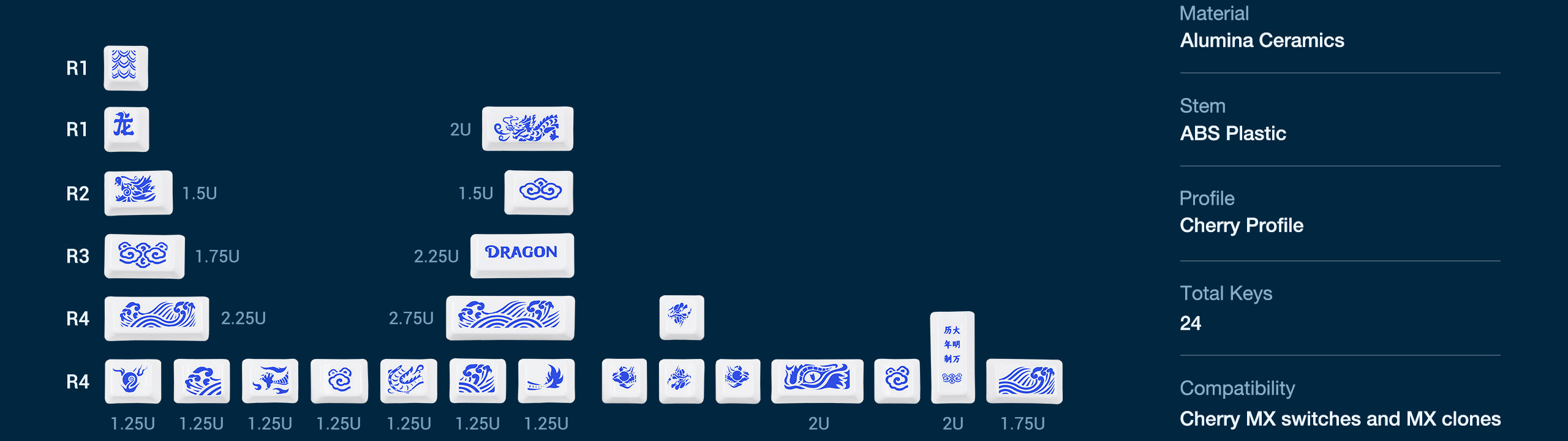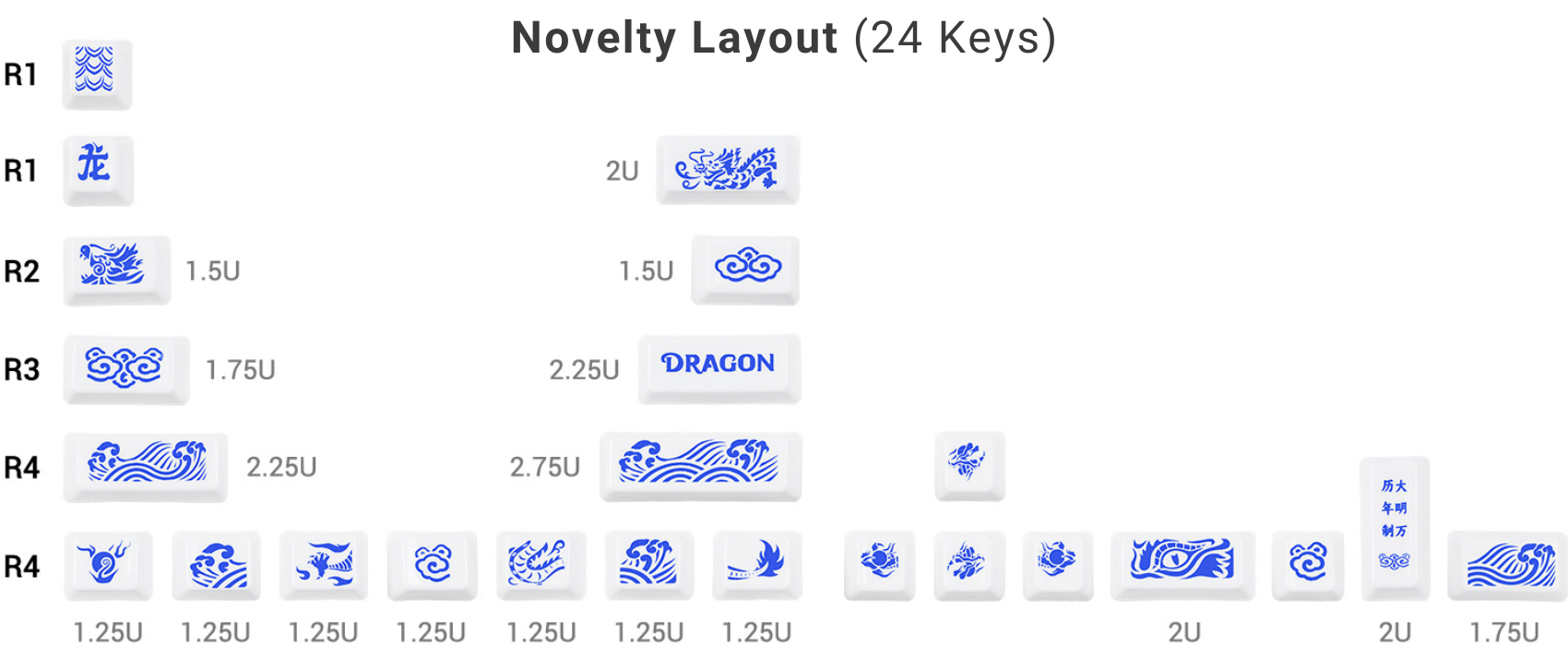 Our dragon novelty ceramic keycap set has multiple color options, allowing you to customize a decent mix-and-match dragon ceramic typing layout.