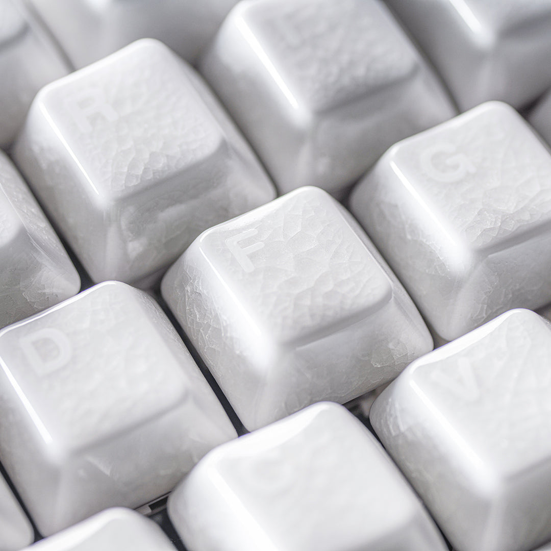 As our flagship keycap, crazed keycap shines with its unique crazed effect while retaining all ceramic attributes, showing Chinese ceramic craft at its finest. The crazing takes months of glazing and firing to ensure the effect does not fade away easily and over time, dressing it as ice cracks on frozen lake, creating unique and dreamy stories.
