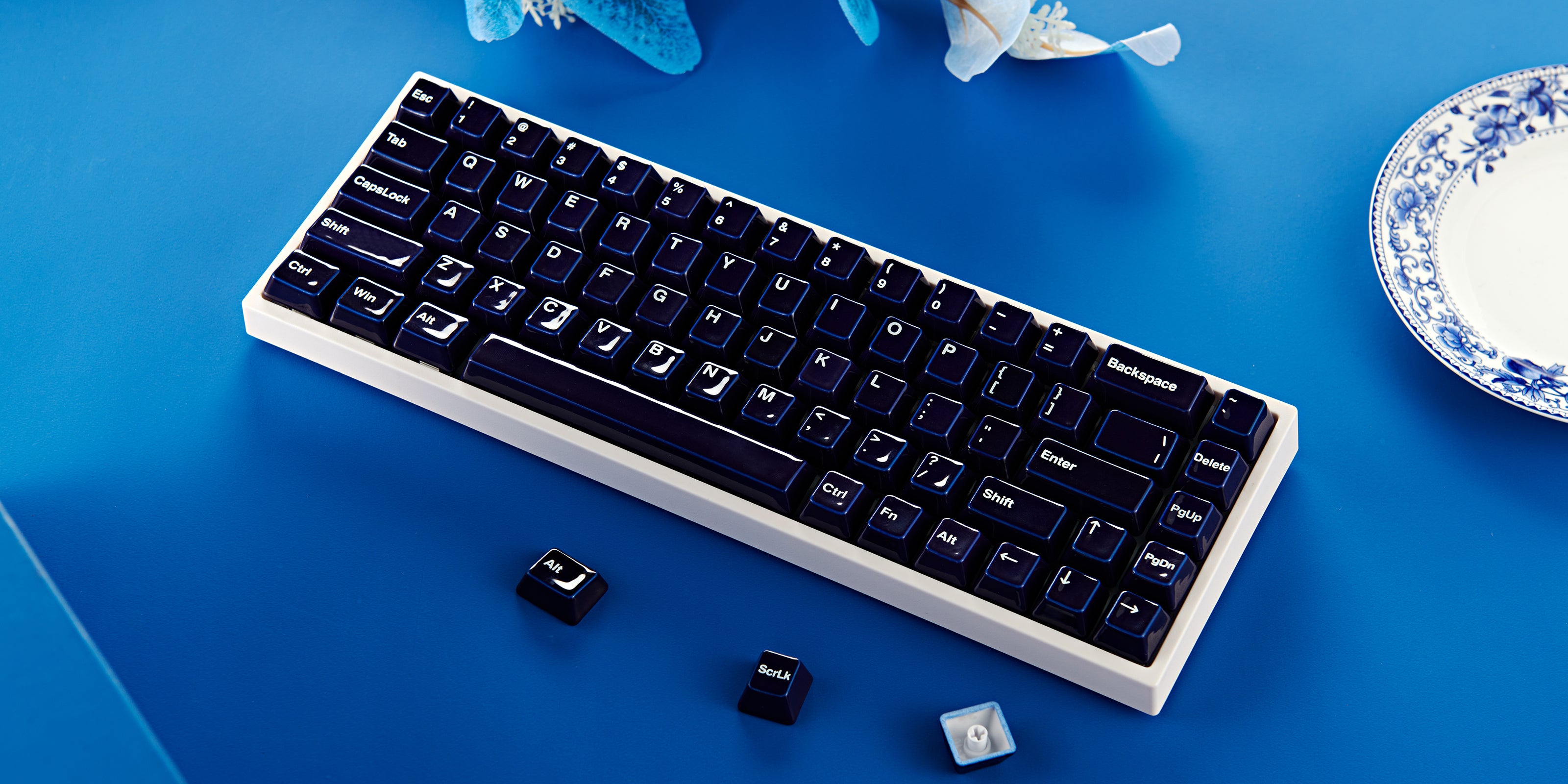 A full 114 keys ceramic keycap set with color & legend options, compatible with Cherry MX switches.