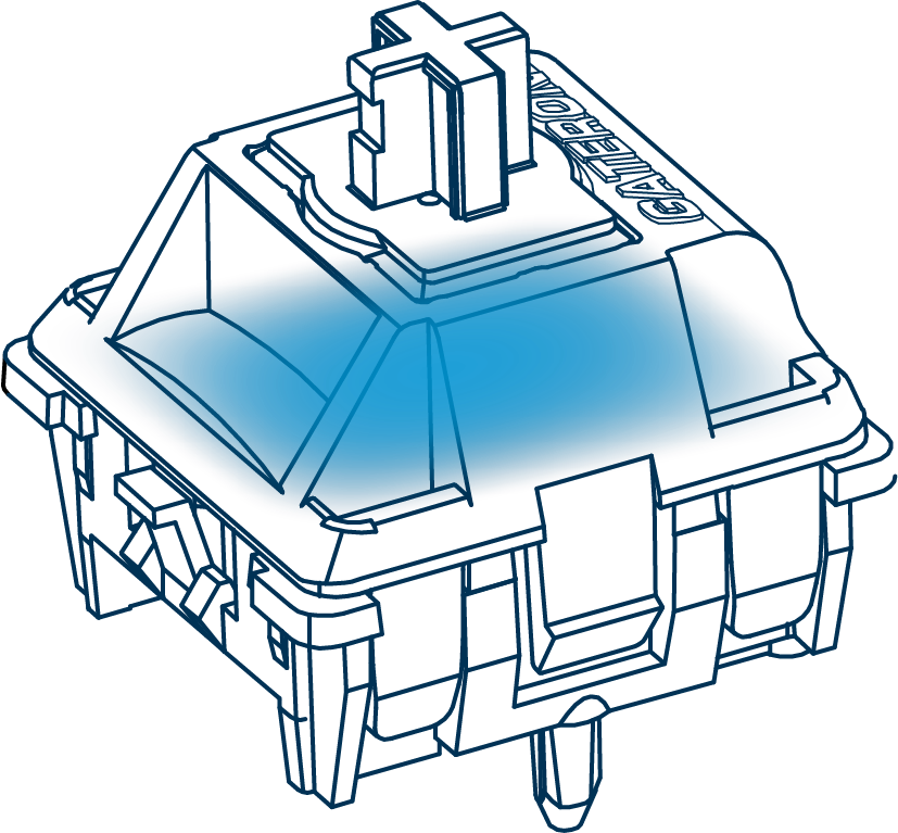 A uniquely engineered light guide paired with ceramic keycaps delivers broader, more uniform illumination.