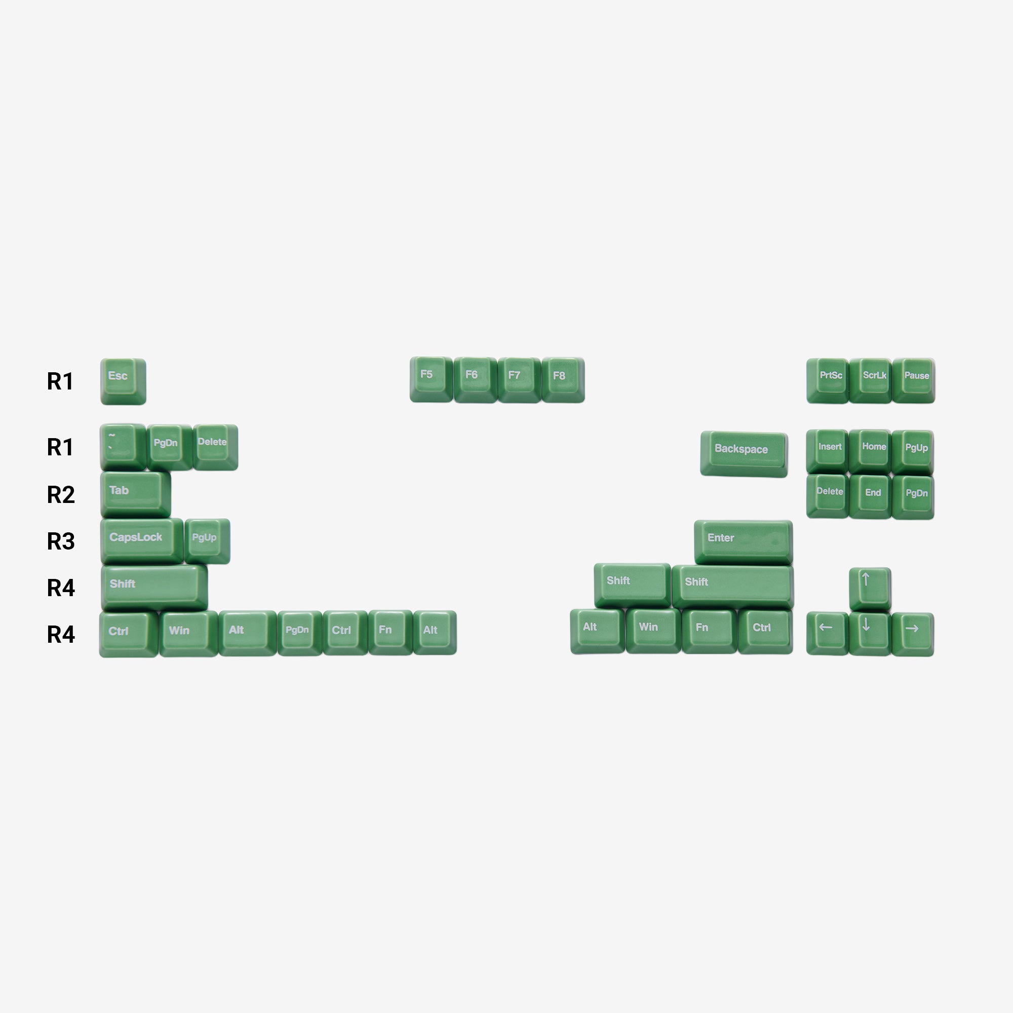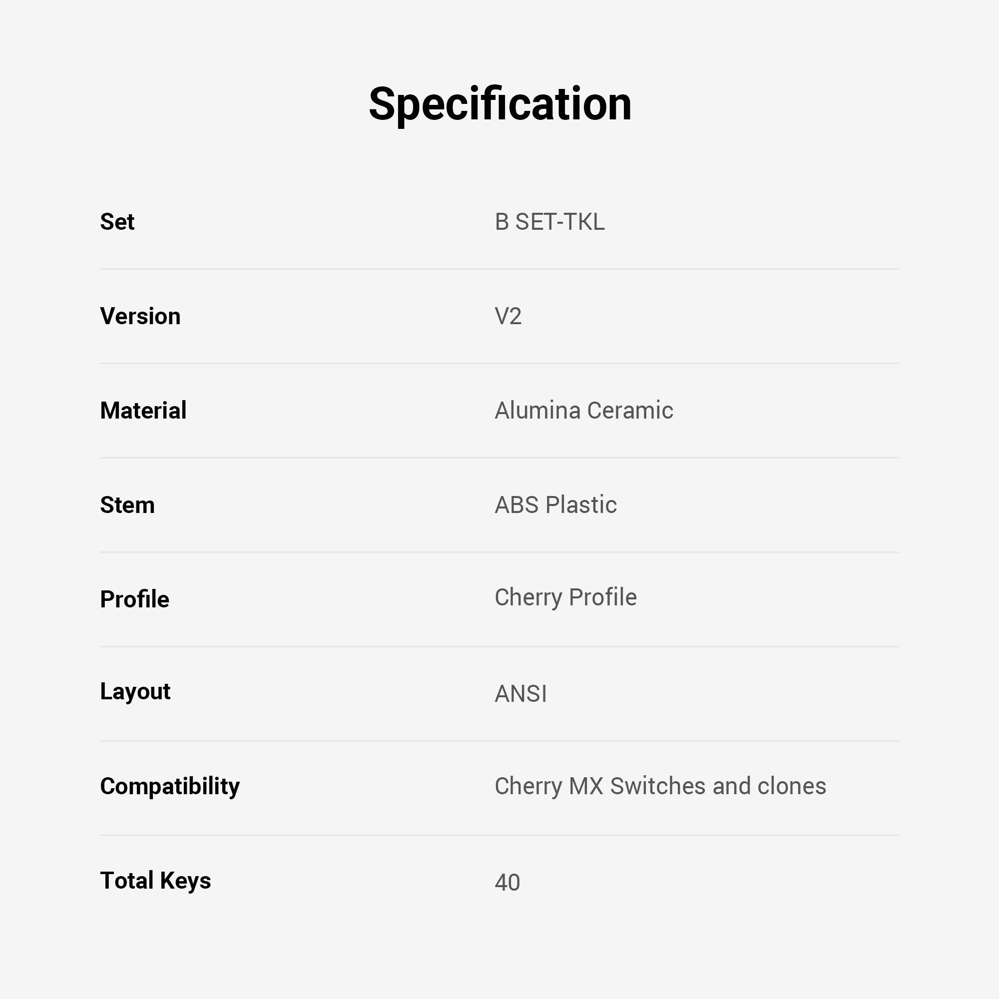 O conjunto TKL vem com a maioria das teclas modificadoras e pode ser combinado com o conjunto A para construir um layout TKL completo.