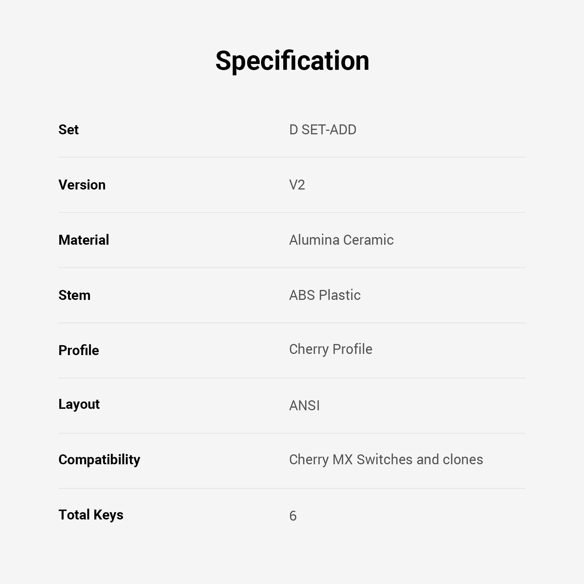 O conjunto Add oferece 6 teclas extras com várias opções de cores e lendas para adicionar um toque final ao seu conjunto de teclas limpas ou misturadas.