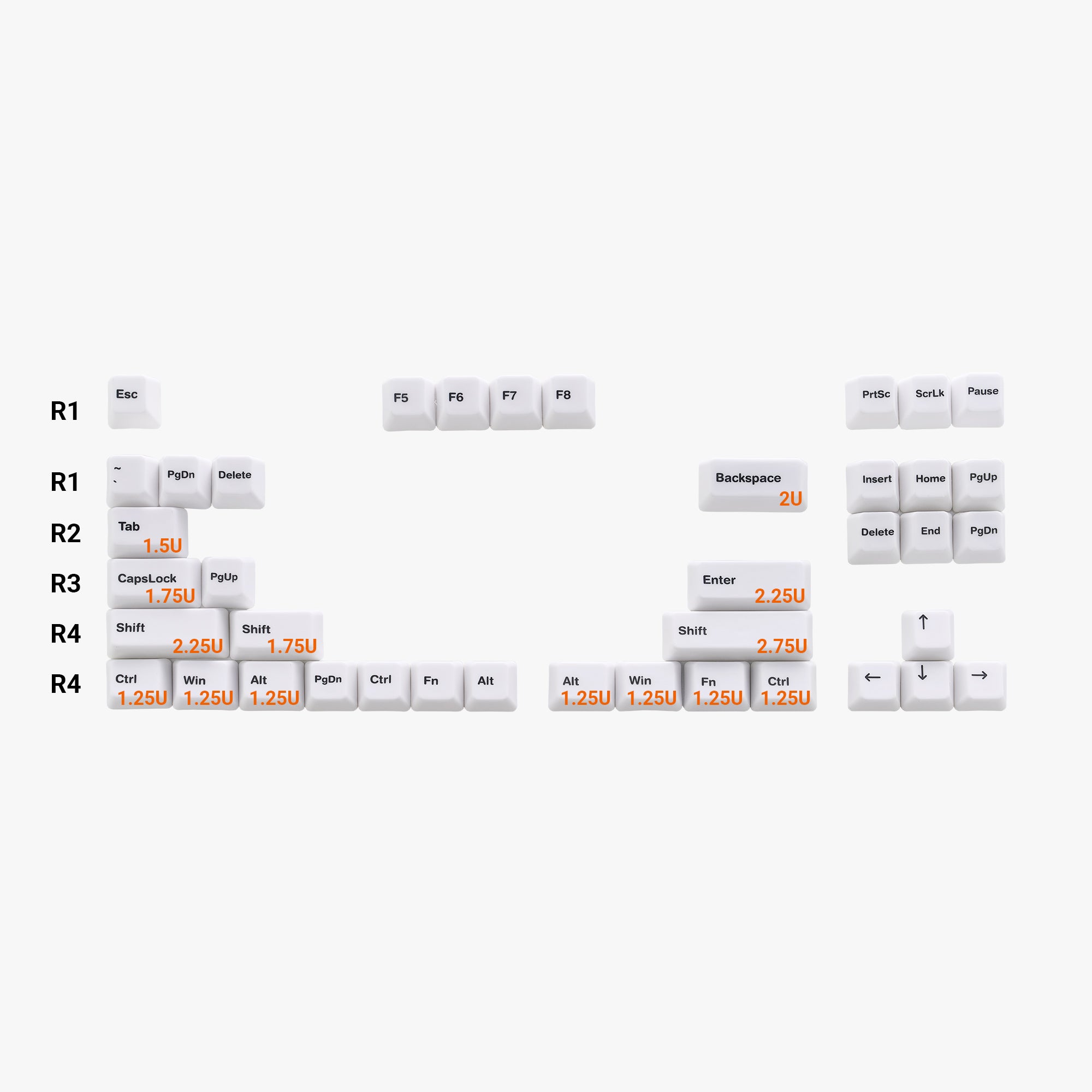 ชุด TKL ประกอบด้วยคีย์ปรับแต่งส่วนใหญ่ และสามารถรวมกับชุด A เพื่อสร้างเลย์เอาต์ TKL แบบเต็ม