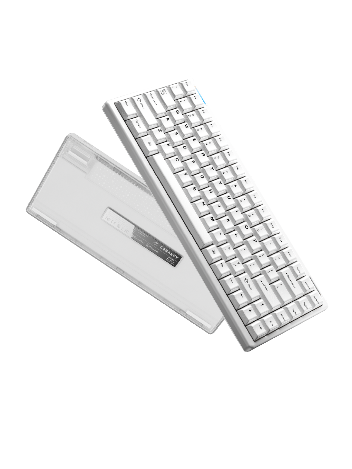 The ZEN75 features a dual-material construction with a sleek aluminum top case and a transparent PC base, seamlessly combining durability and modern aesthetics.