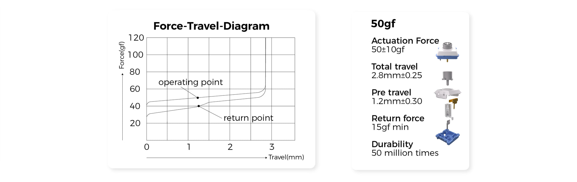 ensure a supremely smooth press. We use the 50gf to the spacebar and the 40gf to all other keys.